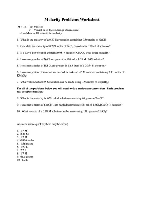 Molarity Worksheet With Answers Pdf. Do not confuse m, l, and ml! Web molarity problems worksheet use m or mol/l as unit for molarity.